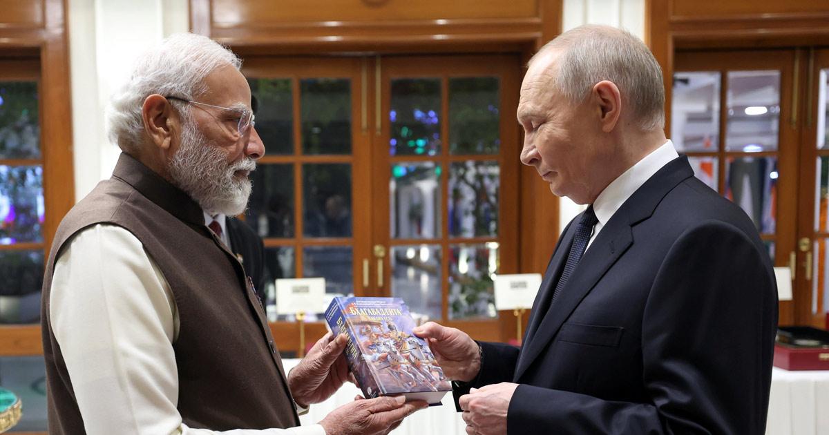 "Presented a copy of the Gita in Russian to President Putin. The teachings of the Gita give inspiration to millions across the world," PM Modi said in a post on X.