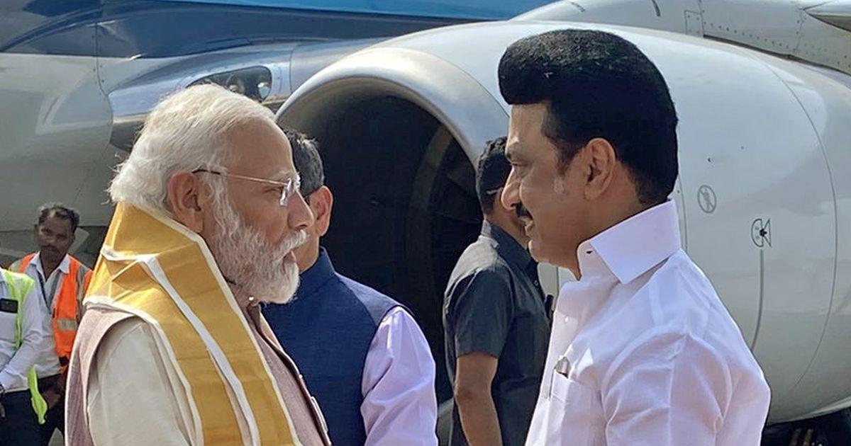 Stalin received the PM at the Chennai airport and later both together, with Governor Ravi in tow among others including Civil Aviation Minister Jyotiraditya Scindia, took a walk around the newly integrated terminal.