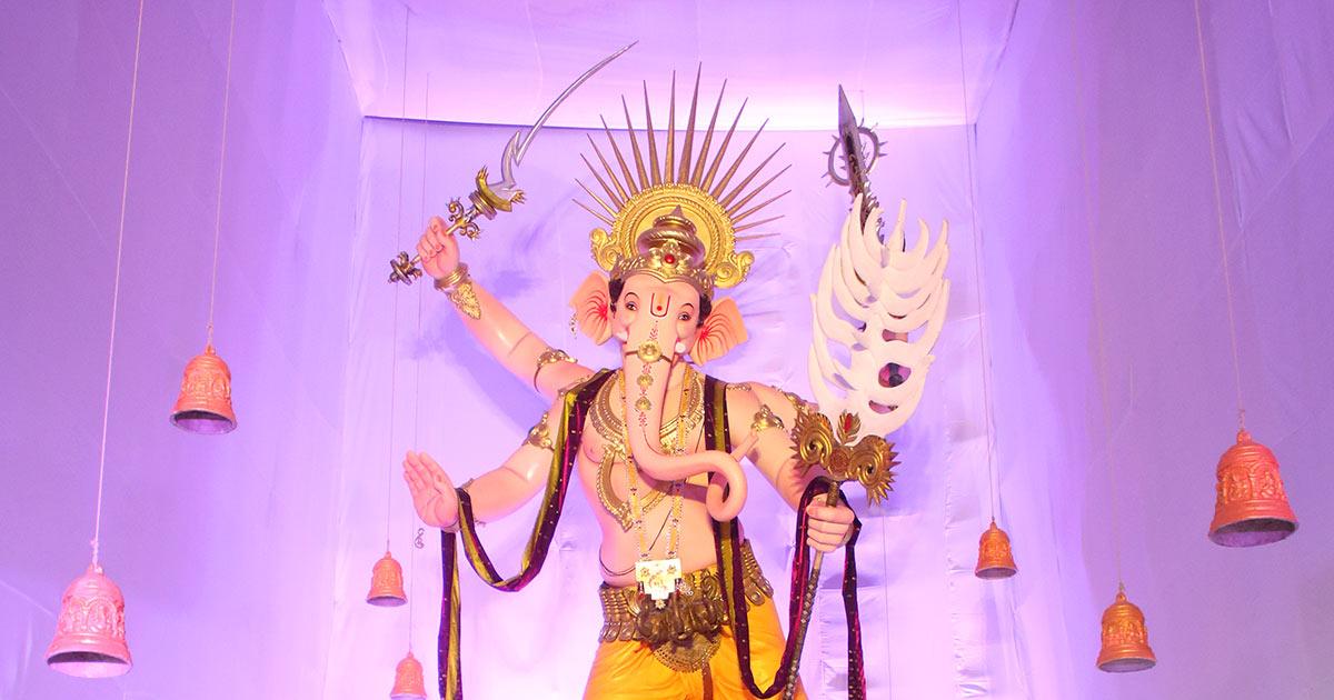 Known as the Khetwadi Cha Lambodara, in an Indra Dev avatar, it is Mumbai's tallest Ganesh idol this year.