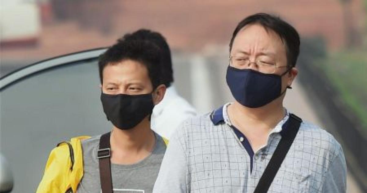 Image: Tourists wear masks to protect themselves from the dangerous smog. Photograph: PTI Photo