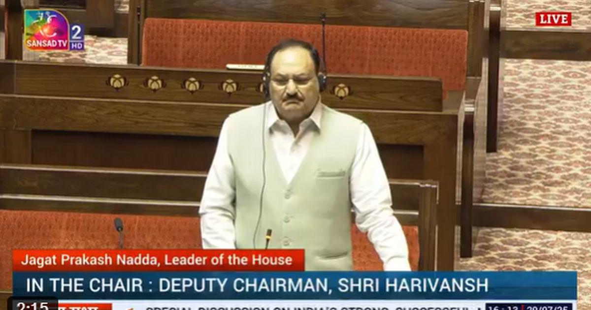 Rising soon after Kharge spoke over one hour during the discussion on Operation Sindoor and the Pahalgam terror attack, Nadda first accused him of "losing his mental balance" as he made some remarks against Prime Minister Narendra Modi.