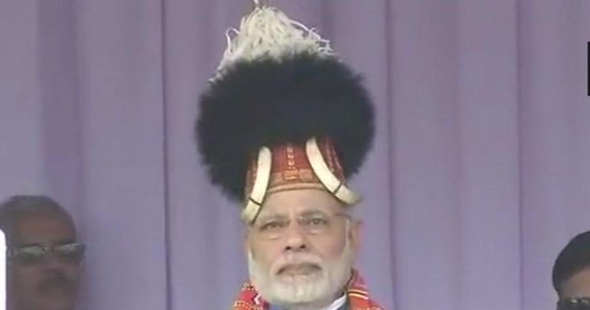 IMAGE: PM Modi in Tuensang on Thursday. Photograph: ANI