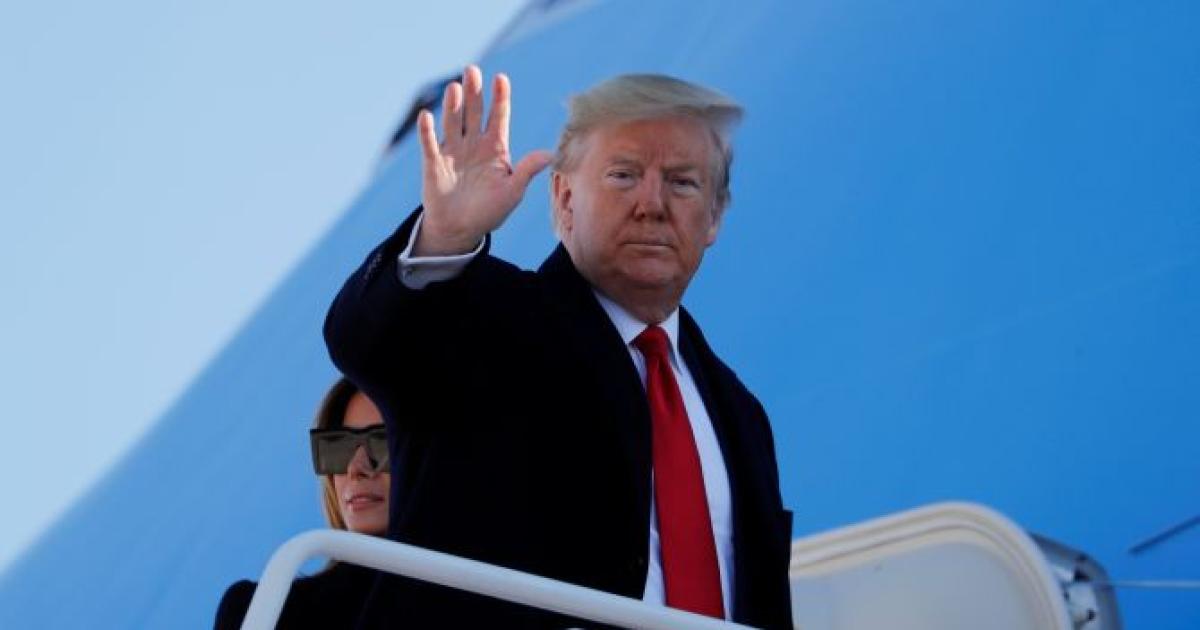The US President is accompanied by First Lady Melania, daughter Ivanka, son-in-law Jared Kushner and the top brass of his administration.