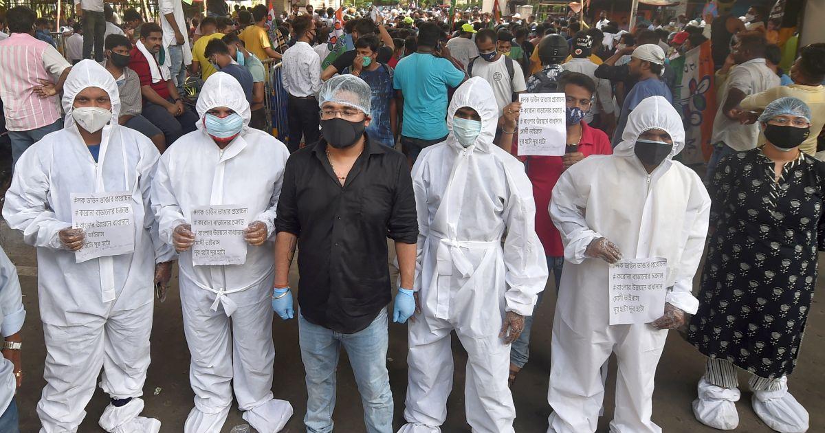 As the news spread, hundreds of Trinamool Congress party supporters gathered defying the ongoing lockdown, raised slogans against the BJP-led NDA government and clashed with security personnel.