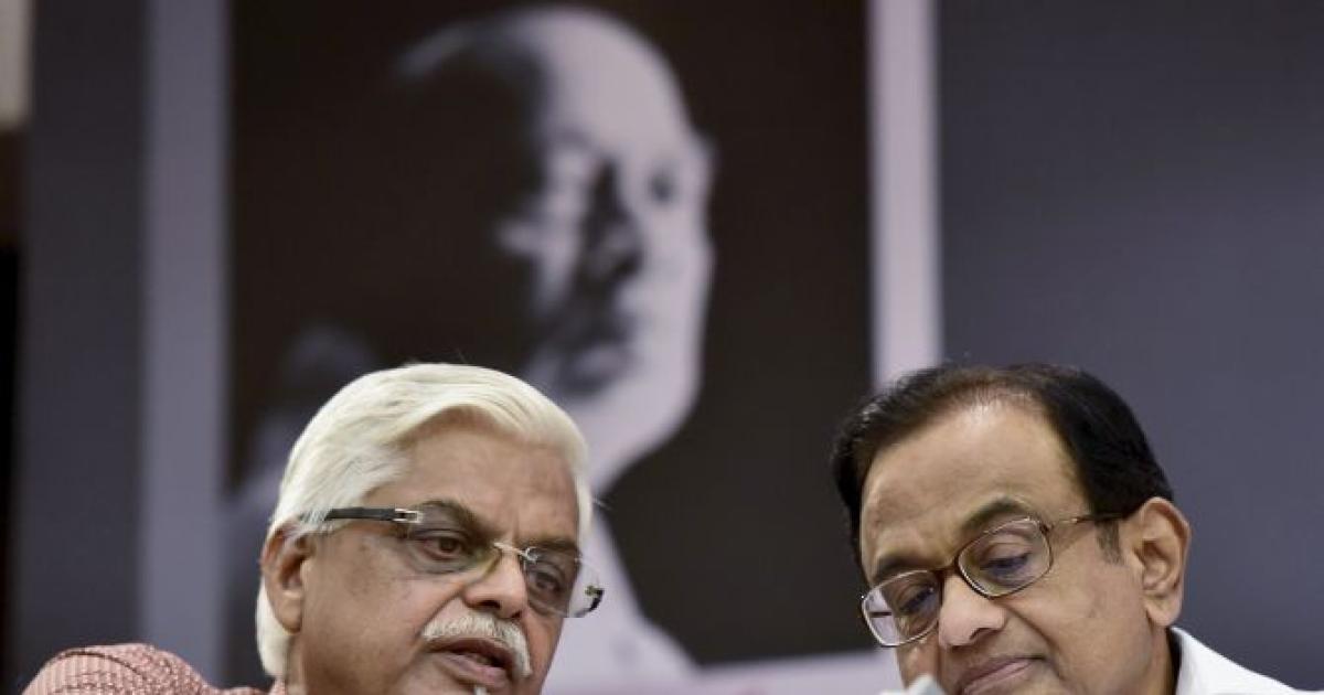 IMAGE: Former Union minister P Chidambaram with author Sanjaya Baru, left, at the release of the latter's book at a function in New Delhi on Tuesday. Photograph: Kamal Kishore/PTI Photo