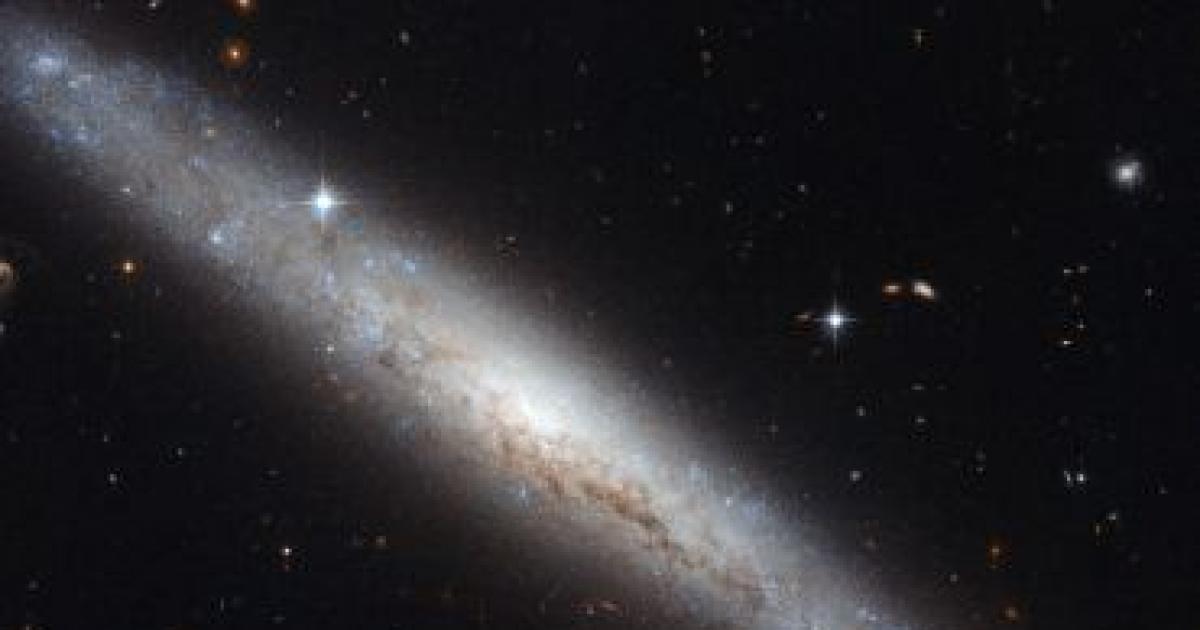 NGC 4183 is a spiral galaxy with a faint core and an open spiral structure. Unfortunately, this galaxy is viewed edge-on from Earth, and we cannot fully appreciate its spiral arms. But we can admire its galactic disc.