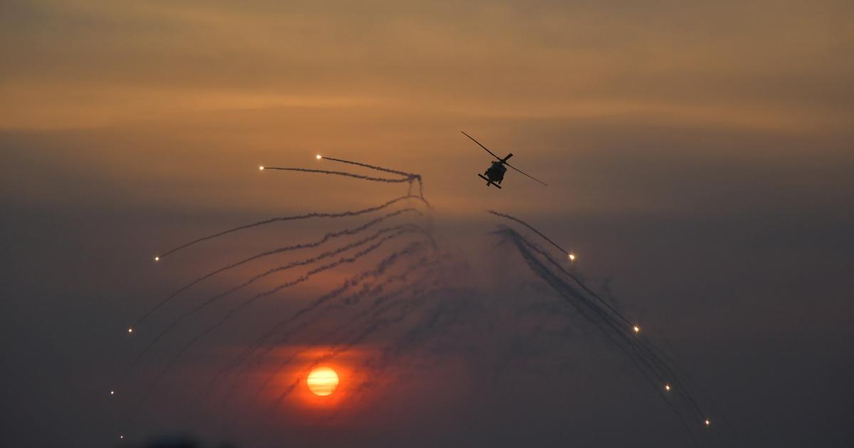 IMAGE: The helicopter fires flares for ease of vision only for the demo; usually these ops are done under the cover of darkness.