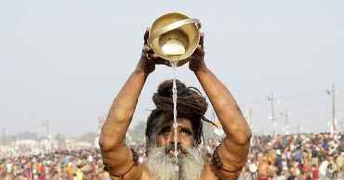Image: A sadhu takes a holy dip in Ganga at the Kumbh Mela in Allahabad