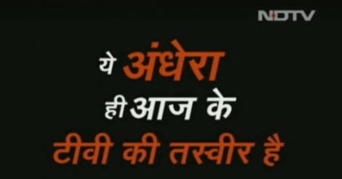 IMAGE: The blank screen on NDTV India as prime time anchor Ravish Kumar delivered his opening riff on the state of news television journalism in India.
