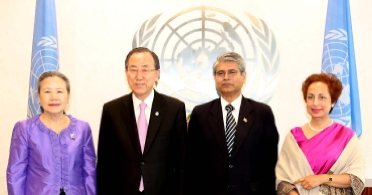 Image: UN Secretary General Ban Ki Moon and Ambassador Asoke Kumar Mukerji with their wives | Photograph: Snapsindia