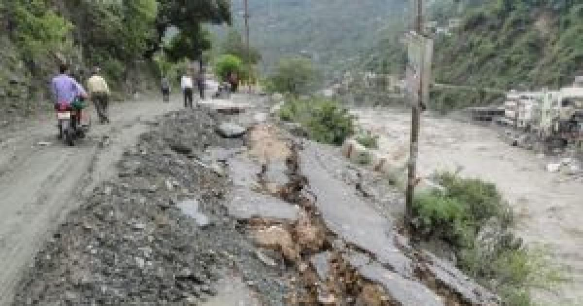 Image: People walk along road that was damaged due to the floods in Uttarakhand