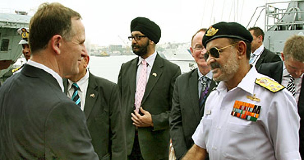 During his visit, Prime Minister Key interacted with Vice Admiral DK Joshi, the flag officer commanding in chief, western naval command.