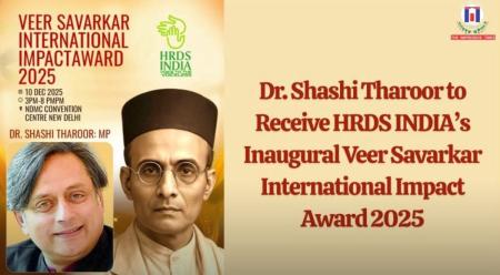 Tharoor was chosen as one of the recipients of the inaugural Veer Savarkar International Impact Award 2025, instituted by HRDS India, on Wednesday in New Delhi.