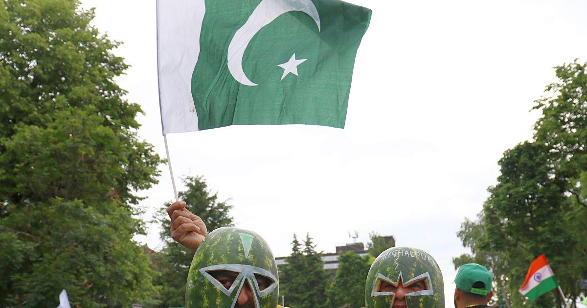 IMAGE: Fans of Pakistan hold their flag and cheer their team before a match between India and Pakistan. Photograph: ANI Photo