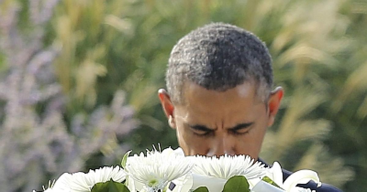 Image: US President Barack Obama lays a wreath before remembrance ceremonies for 9/11 victims at the Pentagon 9/11 Memorial in Washington. Photograph: Gary Cameron/Reuters
