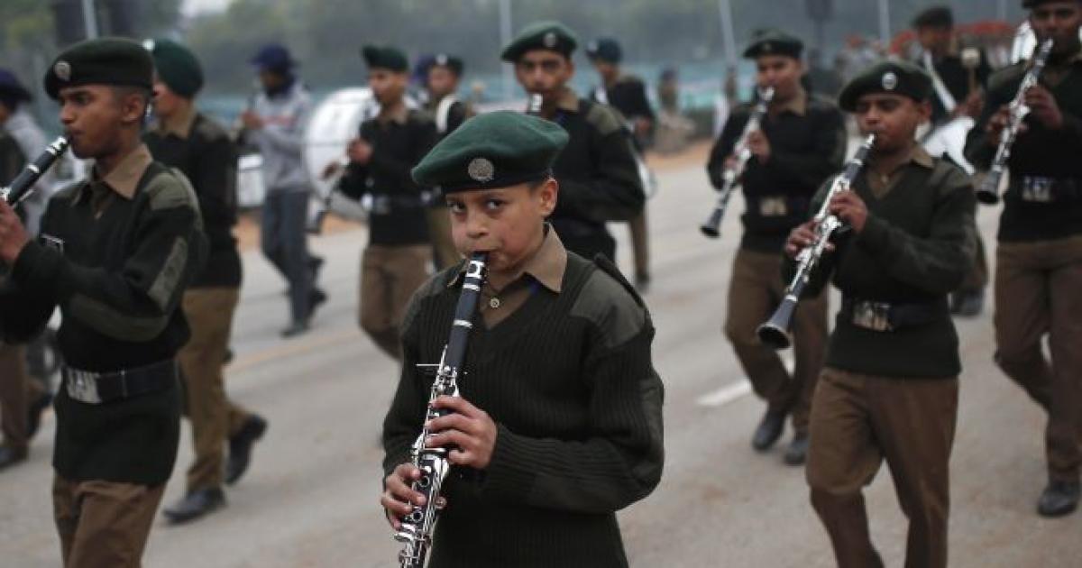 Image: National Cadet Corps during a rehearsal for the Republic Day parade on a winter morning in New Delhi.