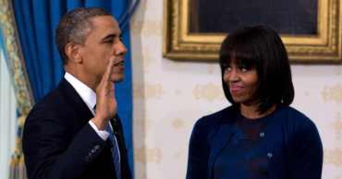 Image: US President Barack Obama takes the oath of office as frst lady Michelle Obama holds a bible during the official swearing-in ceremony at the White House in Washington January 20 | Photograph: Doug Mills/Reuters