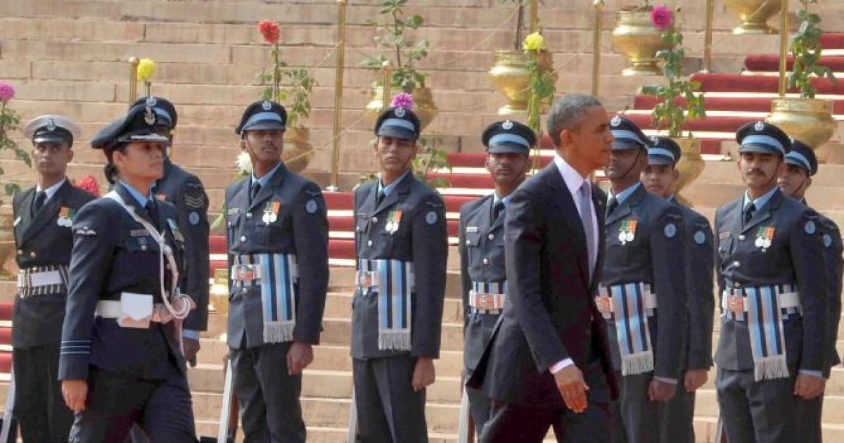 The inter-services Guard of Honour for US President Barack Obama at the Rashtrapati Bhavan was led by Wing Commander Pooja Thakur, the first time a woman officer has led the Guard of Honour for a major visiting dignitary at the presidential palace.