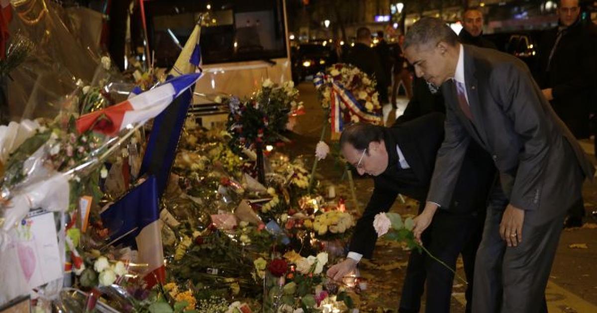 Obama bowed his head in silence just yards from where Islamic State jihadists killed dozens of innocent revellers 16 days ago.