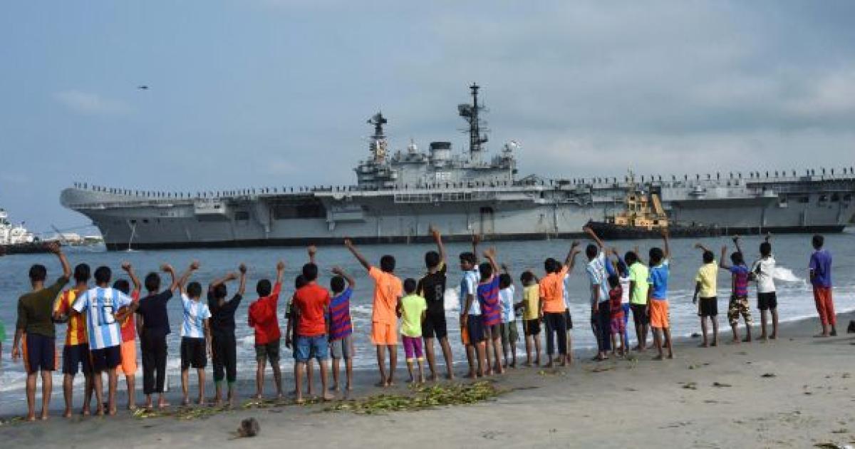 The oldest and longest serving aircraft carrier of Indian Navy INS Viraat sets sail from Kochi for Mumbai where it will be decommisionned. Photographs: PTI Photo