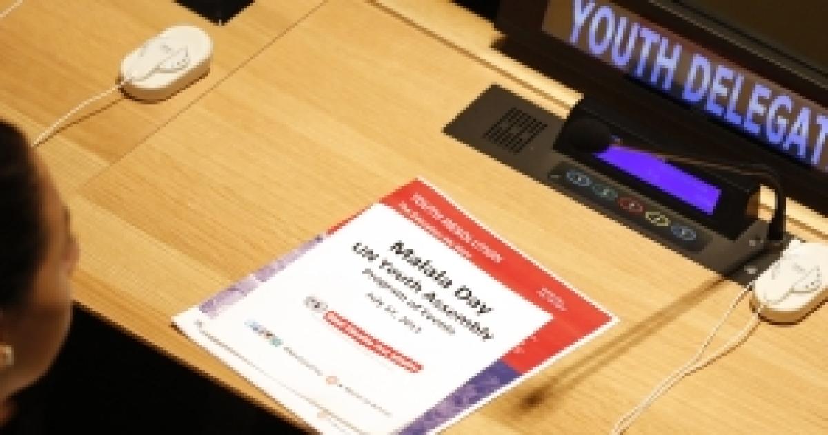 Image: A youth delegate attends Malala Yousafzai's first speech since the Taliban in Pakistan tried to kill her for advocating education for girls, at the United Nations Headquarters in New York