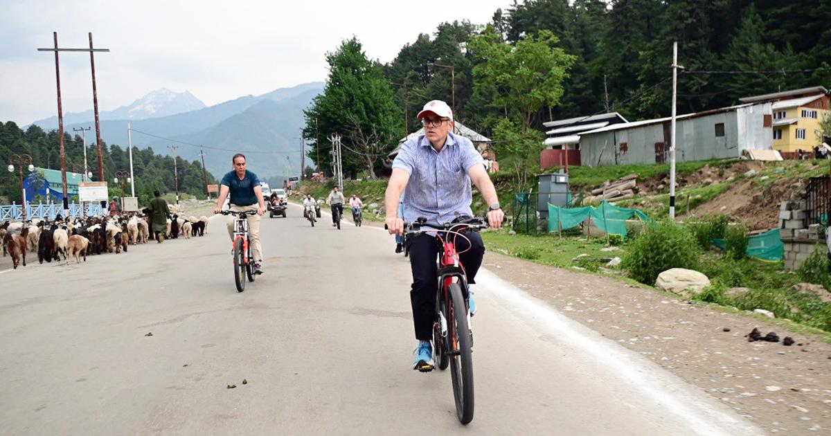 The visit to Betaab Valley was followed by an impromptu cycling tour by the chief minister from a local hotel to Nunwan Base Camp and back, to promote new initiatives taken by Tourism Department towards sustainable tourism.