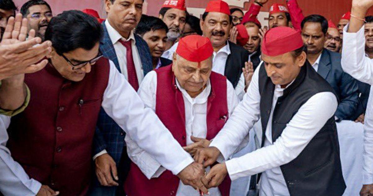 Mulayam reached the SP headquarters with his son and party president Akhilesh Yadav. The two were welcomed by party leaders including Ram Gopal Yadav and Dharmendra Yadav.