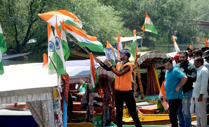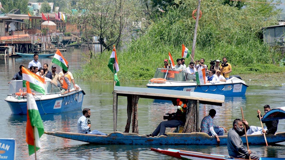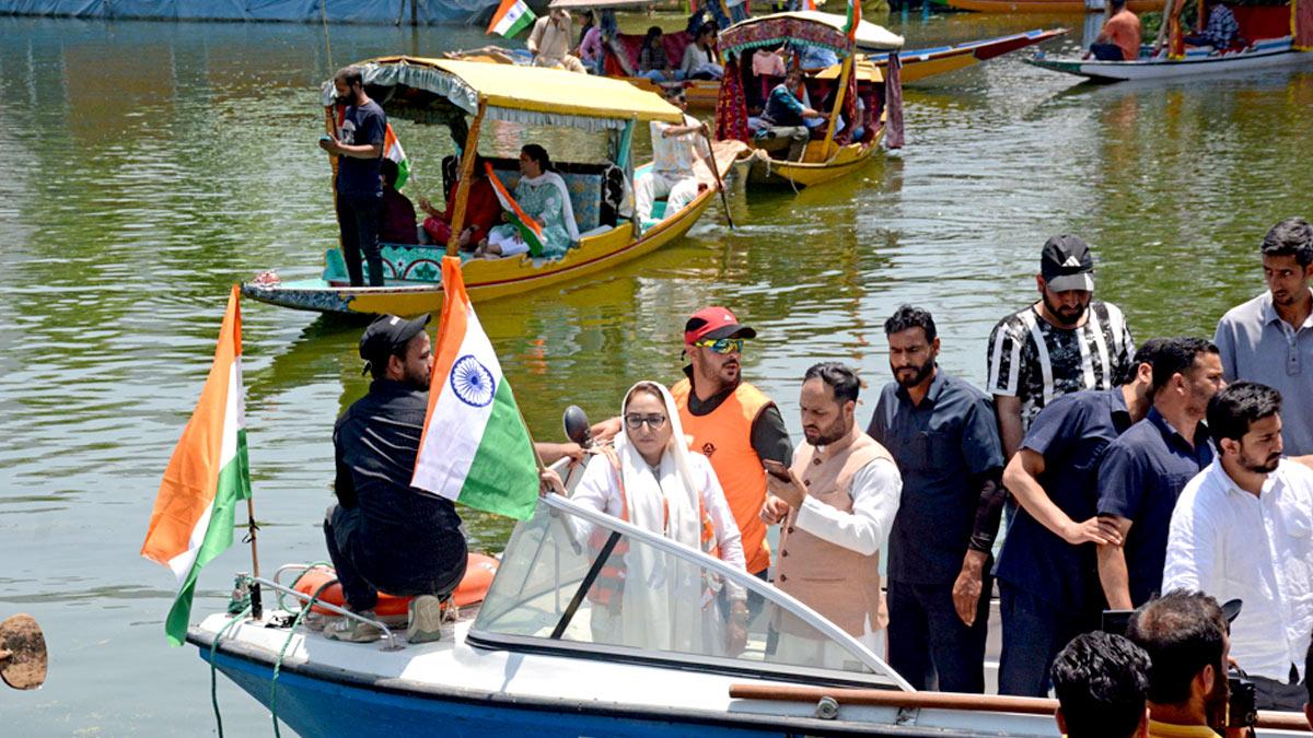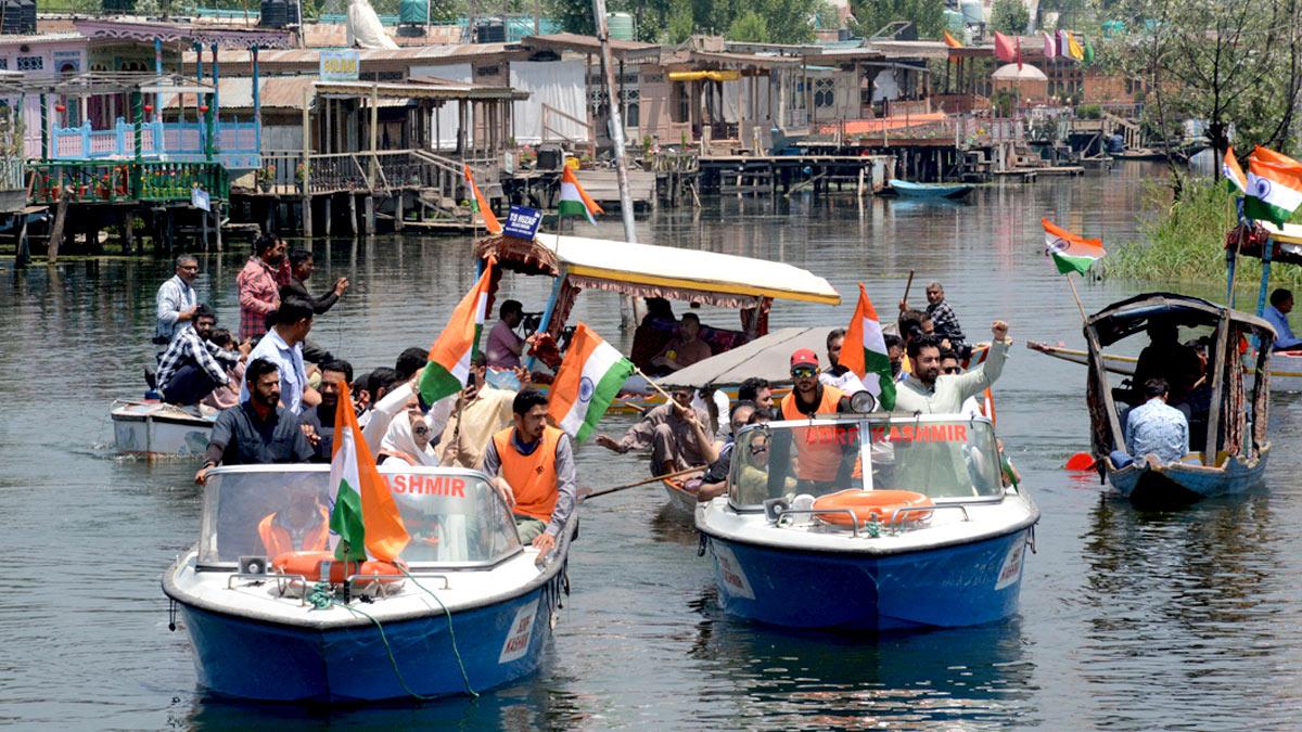 Shikarawallahs, local residents and senior Bharatiya Janata Party leaders, participated in a Tiranga Shikara Yatra to honour soldiers who had taken part in Operation Sindoor.