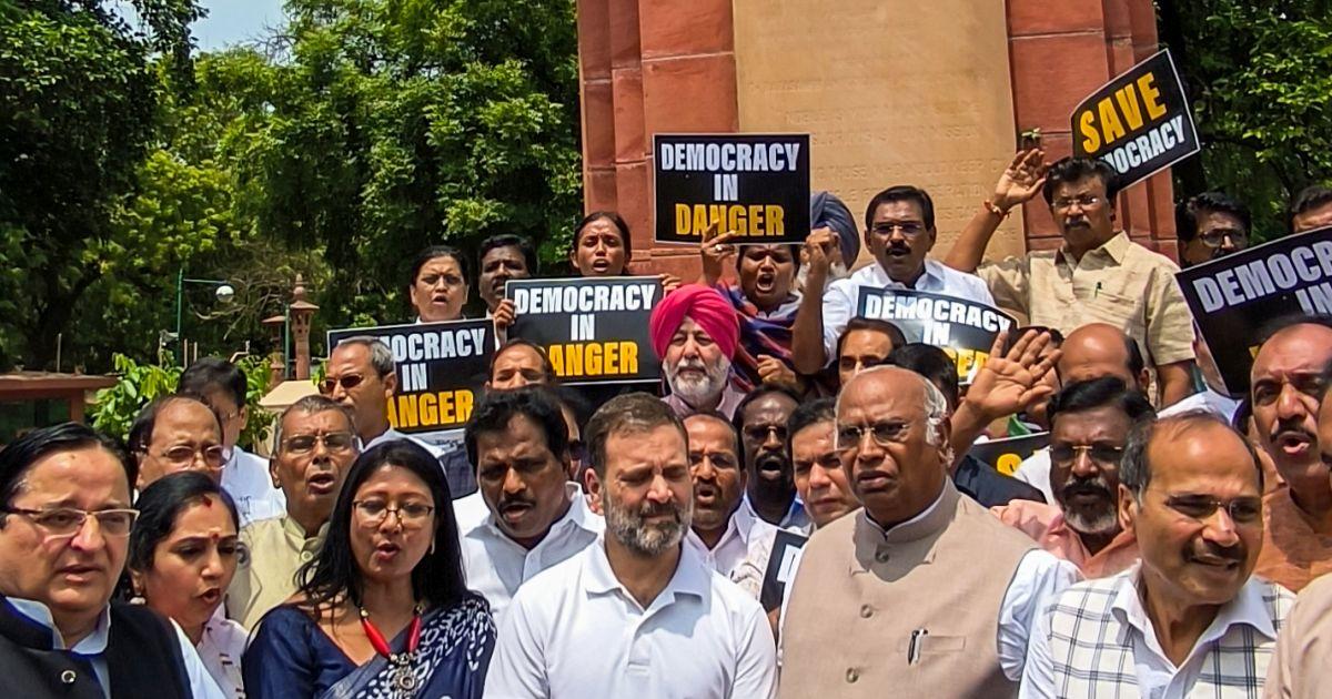 Congress leader Rahul Gandhi was among those who led the opposition's protest.