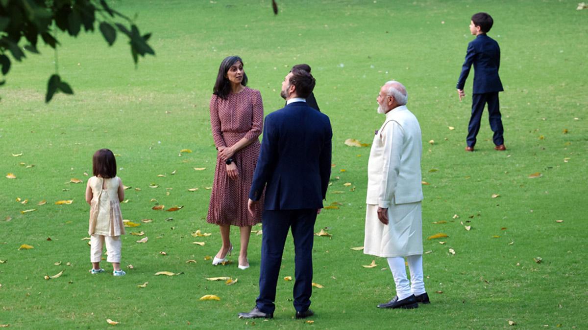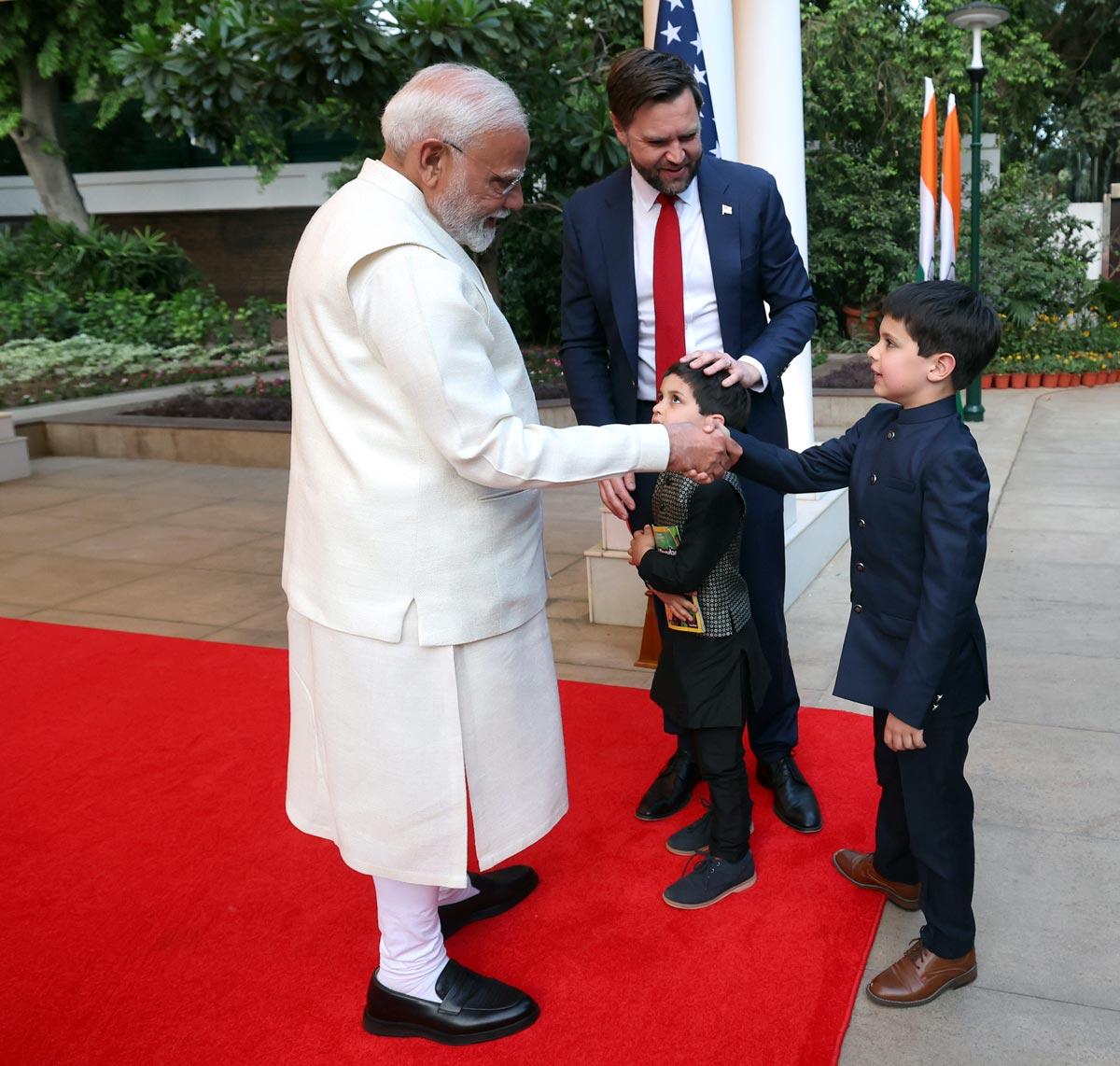 While inside, Modi shared several lively moments with Ewan, Vivek, and little Mirabel and presented the three children with peacock feathers. Mirabel Vance was seen enjoying a heartwarming moment with her father, holding the feather.