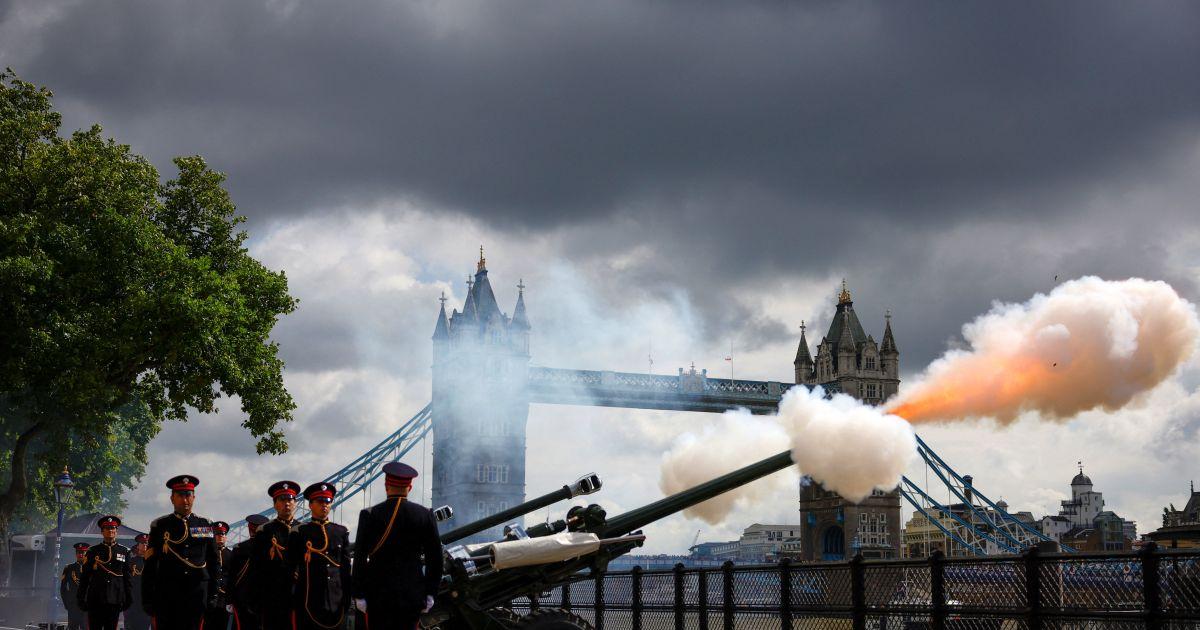 In London, 96 rounds of gun salutes -- one for every year of the Queen's life -- have been fired in tribute to the late monarch from the Tower of London and Hyde Park by the King's Troop Royal Horse Artillery and the Honourable Artillery Company.