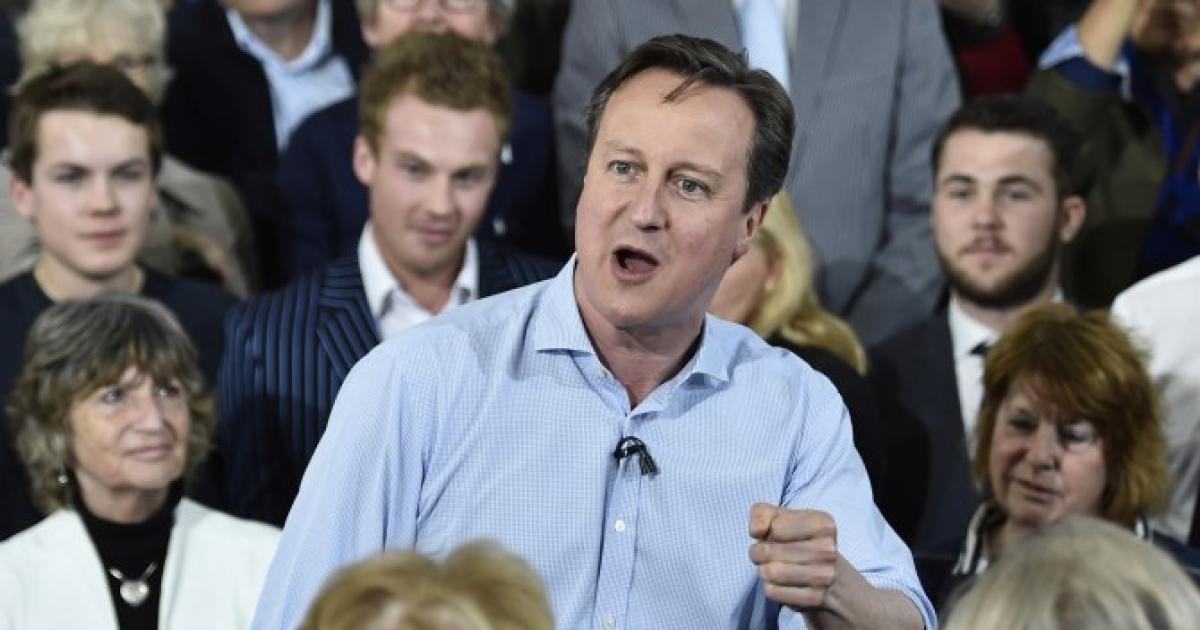 Britain's Prime Minister David Cameron gestures as he speaks at an election rally in St Ives, Britain. Photographer: Toby Melville/Reuters