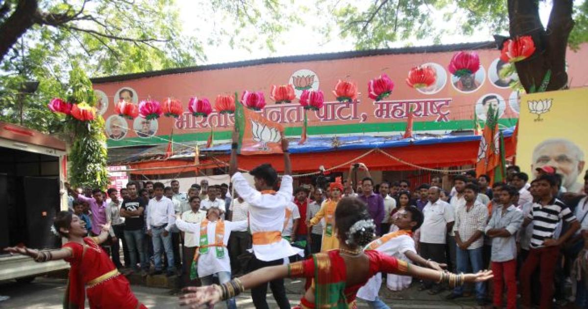 All set to celebrate its victory, the scene at Bharatiya Janata Party office in Mumbai was of joy. Senior leaders of the BJP came out in full support and celebrated their victory. They were already flashing the victory sign.