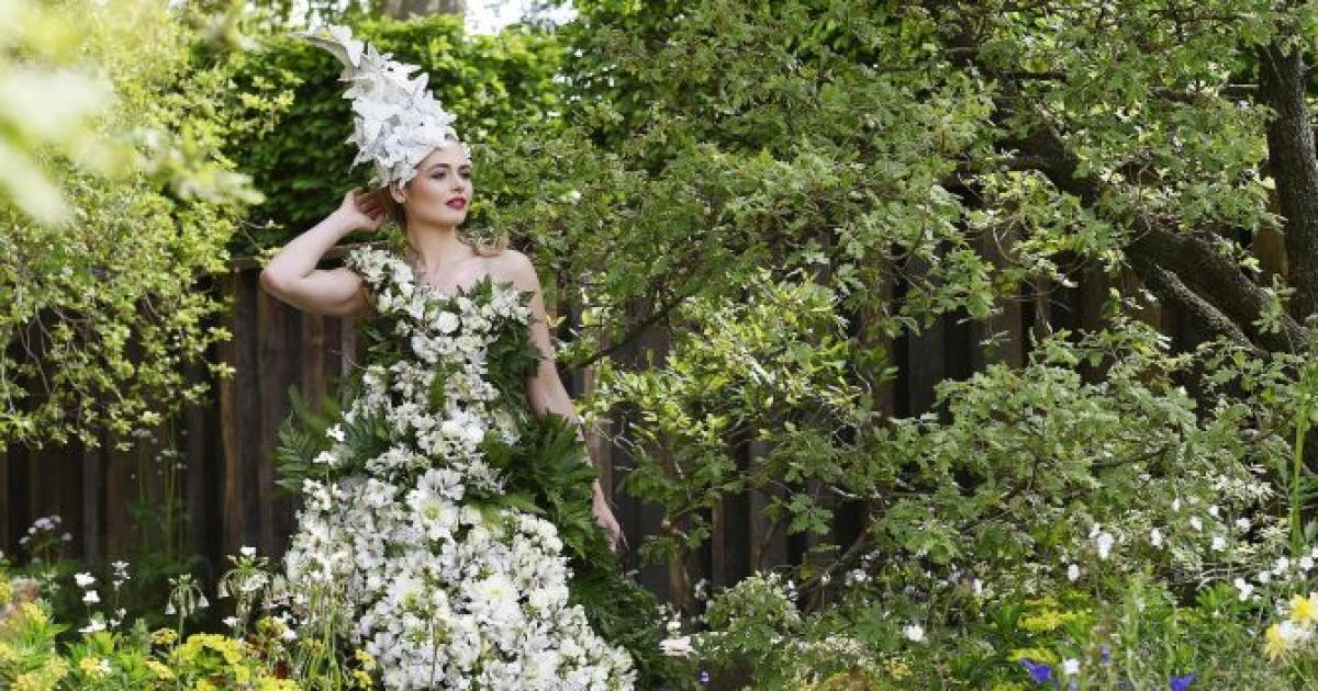 A model poses in a floral dress at the Chelsea Flower Show in London, Britain. Photograph: Toby Melville/Reuters