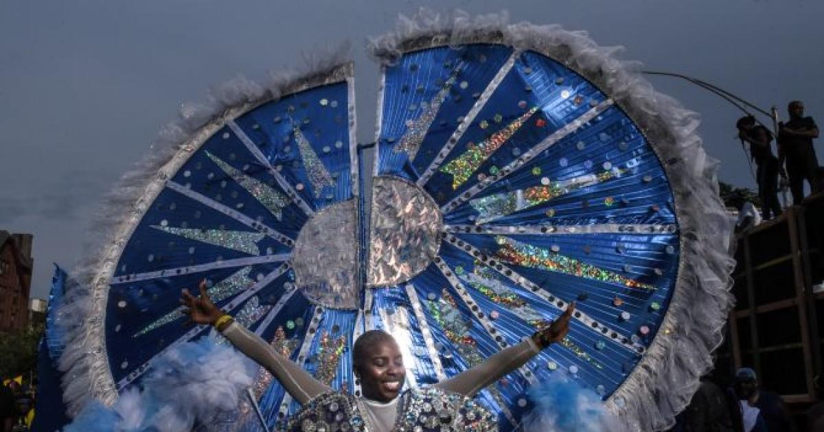 A person wears a large costume during the annual West Indies Day parade in the borough of Brooklyn in New York City, US. Photograph: Stephanie Keith/Reuters