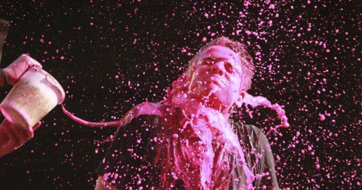 A man reacts as coloured water is splashed on him during Holi celebrations in Chennai. Photograph: Reuters