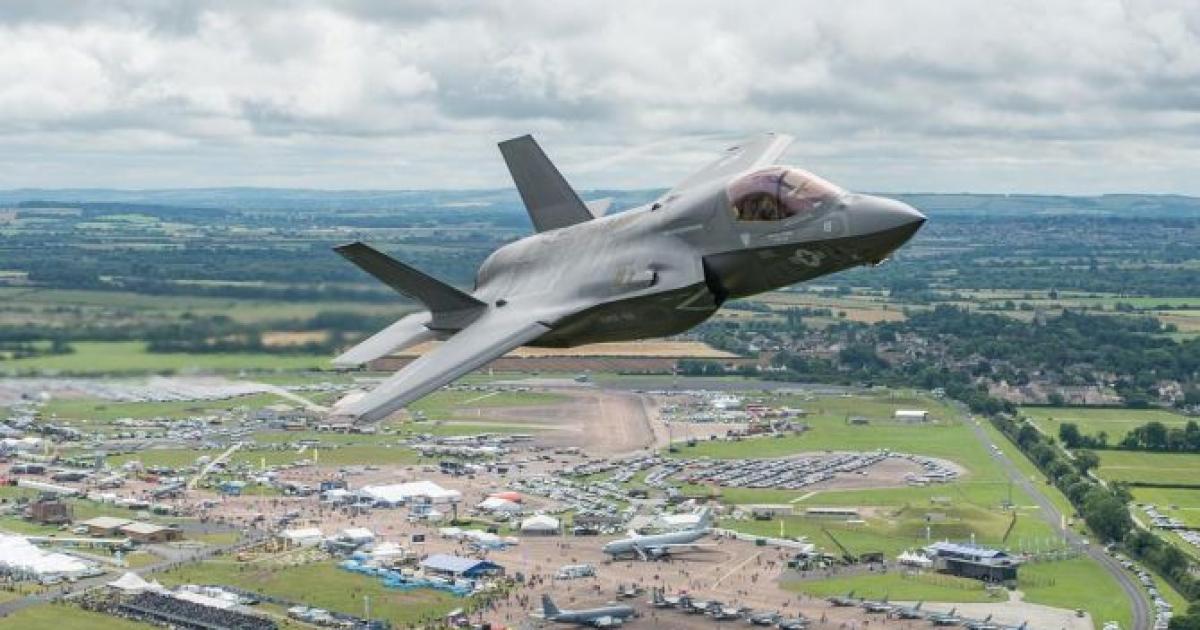 A Lockheed Martin F-35B Lightning II performsduring a flying display at the Royal International Air Tattoo in Fairford, Britain. Photograph: airtattoo/Instagram