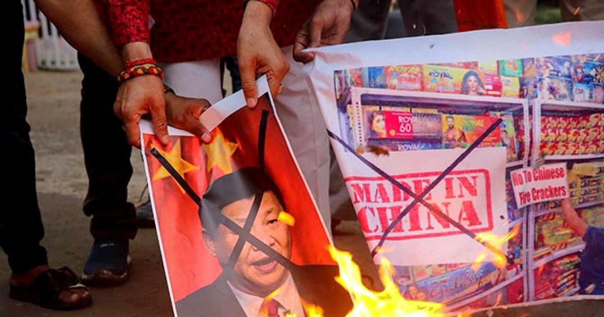 People took to the streets in New Delhi, Mumbai, Ahmedabad, Jammu, Bhopal, Patna and other cities and set fire to the Chinese flag and photos of the neighbouring country's President Xi Jinping.