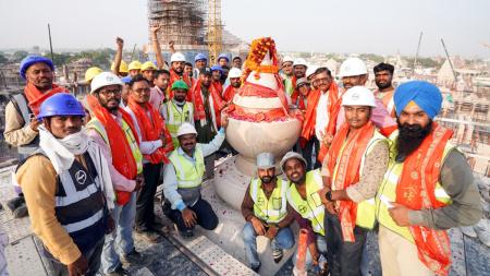 All seven mandaps are expected to be completed within the next 10 days of April. The temple's peak is complete, and the sacred urn has been installed. Flag poles have also arrived, been worshipped, and are ready to be installed on the peak, Rai said.