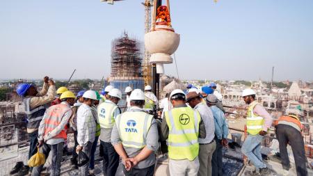 The completion of the Ram temple in Ayodhya is progressing rapidly, with the temple's peak already complete and flag poles installed.