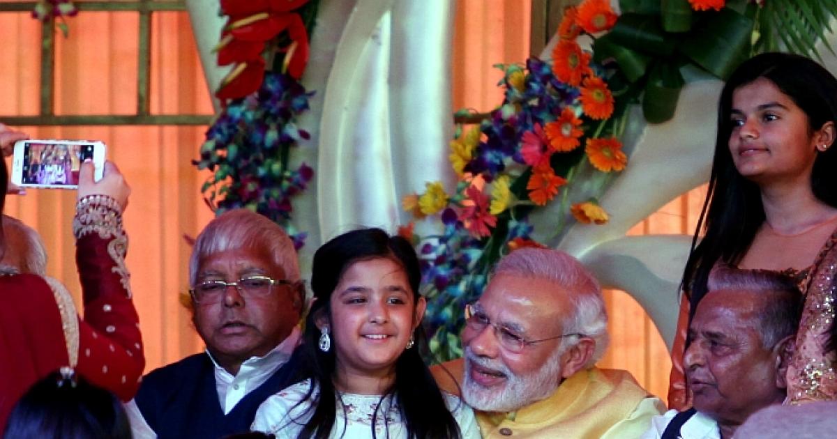 Prime Minister Narendra Modi on Saturday attended the pre-wedding ceremony of Samajwadi Party supremo Mulayam Singh Yadav's grandnephew with Rashtriya Janata Dal chief Lalu Yadav's daughter, an event which saw the most powerful political families of Uttar Pradesh and Bihar coming together.