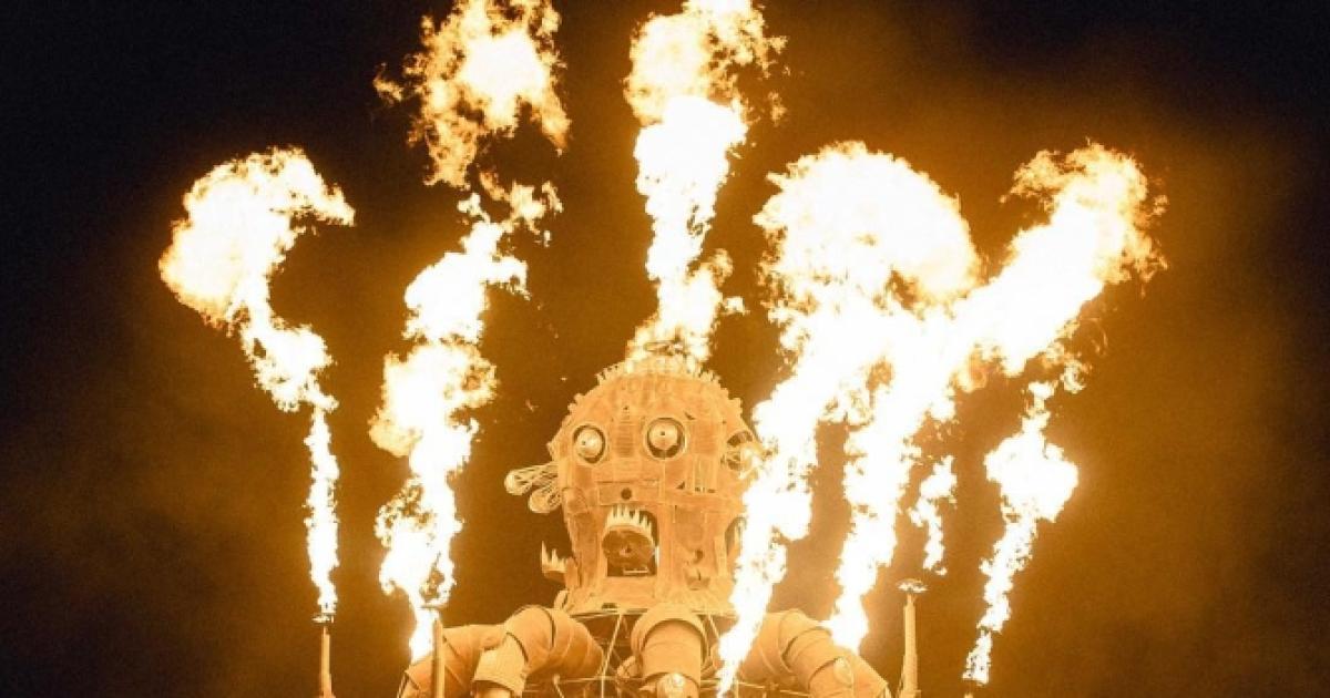 The El Pulpo Mecanico in full fury. It's a 25-ft mechanical octopus that shoots 30-foot gouts of flame from its tentacles. The sculpture uses 200 gallons of propane per night. Photograph Courtesy: thelifeofdeco/Instagram