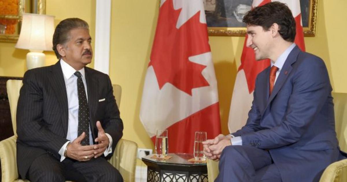 Canadian Prime Minister Justin Trudeau interacts with Mahindra chairman Anand Mahindra. According to reports, the Canadian PM met with six of India’s most influential business tycoons making deals that he says will create at least 5,000 new jobs in Canada.