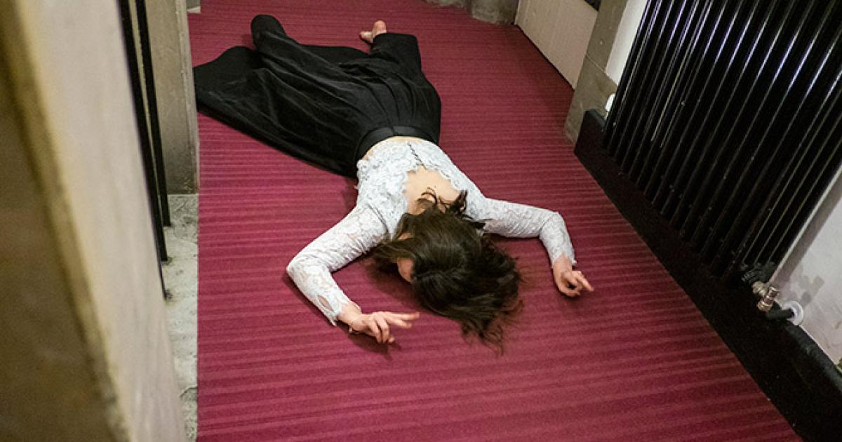 Floored! This wedding guest is finally at peace on the floor after heavy drinking on the big day. Weldon's pieces cut through the clichés of the big day. A photographer for 15 years, he says he tries to bring out the chaos and the drama that goes along with someone's wedding.