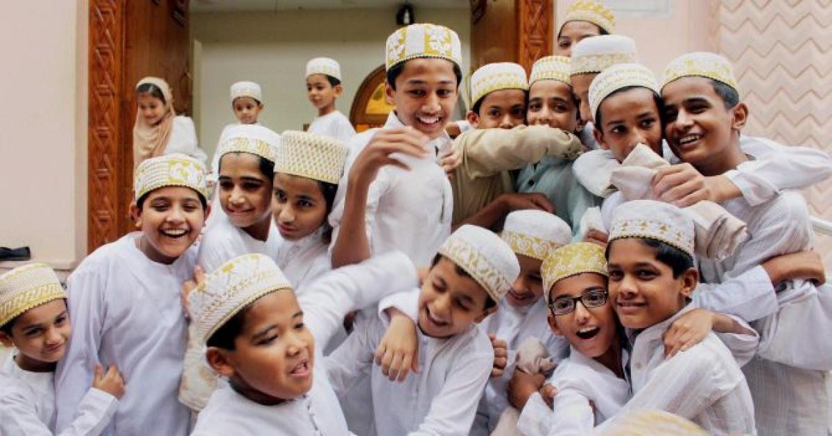 Children of Dawoodi Bohra community greet each other on the occasion of Eid-ul-Fitr festival in Bhopal. Photograph: PTI
