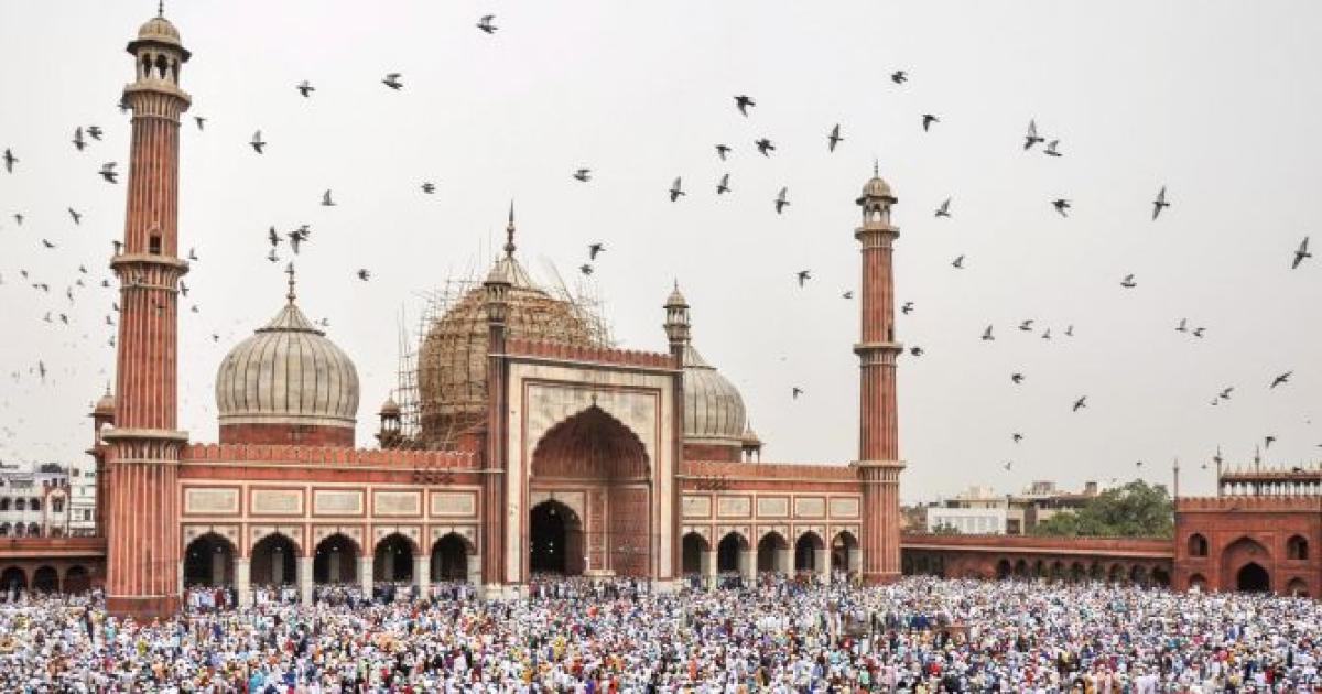 IMAGE: Muslims offer Eid-al-Fitr prayers at the Feroz Shah Kotla Mosque, in New Delhi. Photograph: Kamal Singh/ PTI Photo