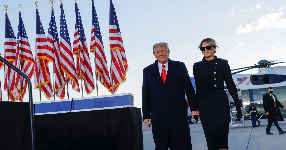 IMAGE: Trump and Melania leave the White House to board Marine One ahead of the inauguration of President-elect Joe Biden, in Washington, DC. Photograph: Leah Millis/Reuters
