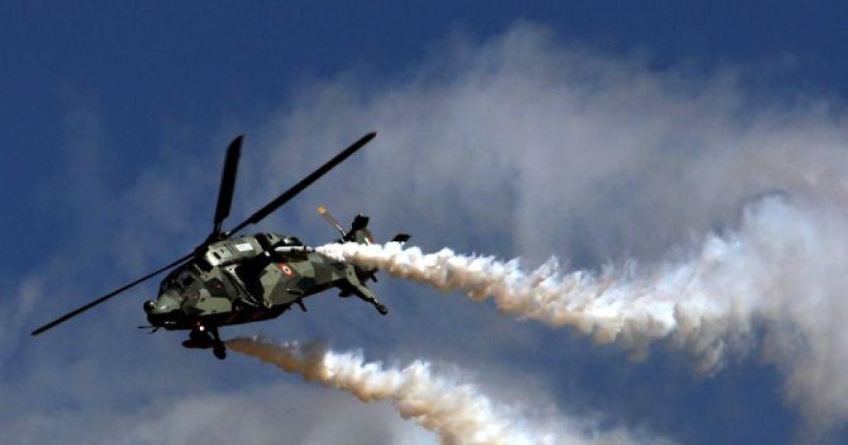 The HAL Light Combat Helicopter performing aerial manoeuvres during a rehearsal at the Bengaluru air space. Photograph: @SpokespersonMoD/Twitter