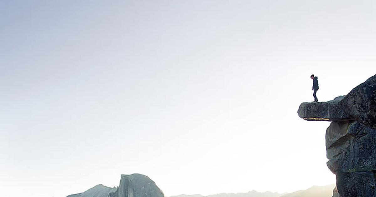 On the edge: A man stands precariously on a cliff edge in Yosemite National Park, in California's Sierra Nevada mountains. Photograph: @joeshelly/Agora Images