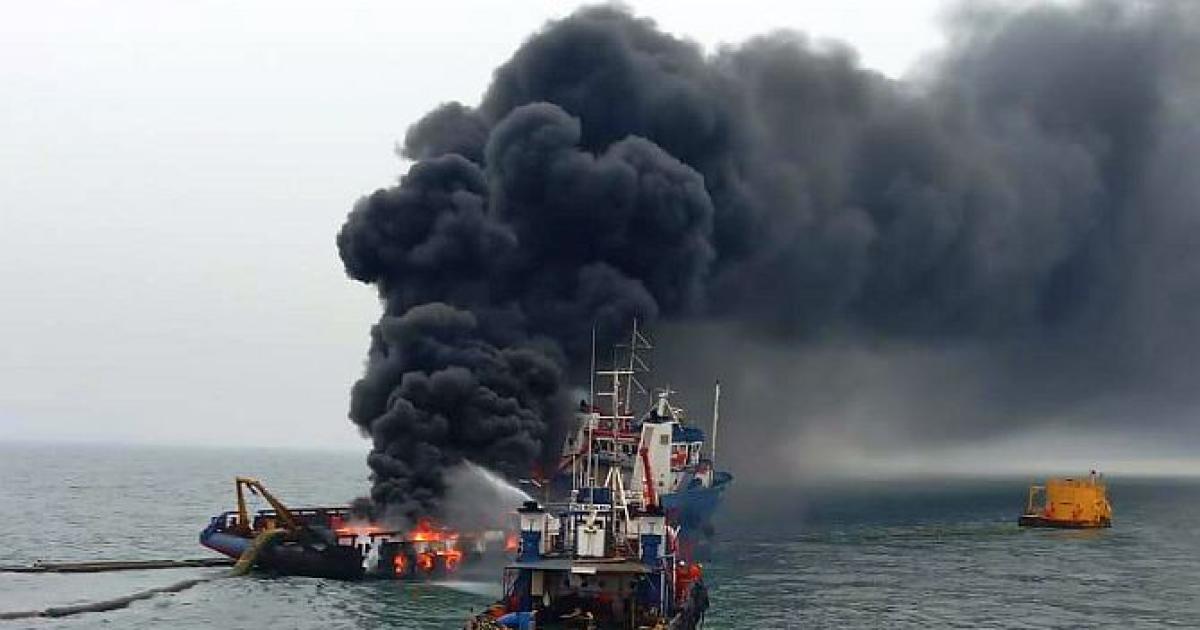 WATCH: Fire engulfs offshore support vessel